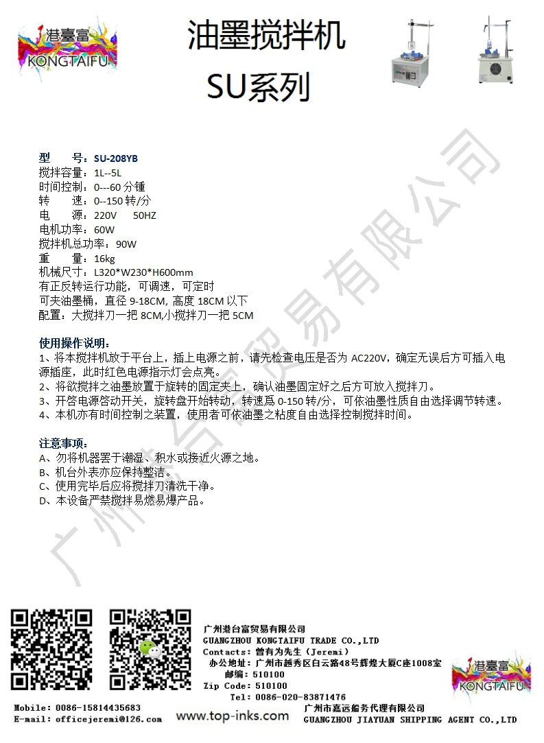 4.本机还设有时间控制设备,用户可以根据油墨的粘度自由选取控制混合时间。